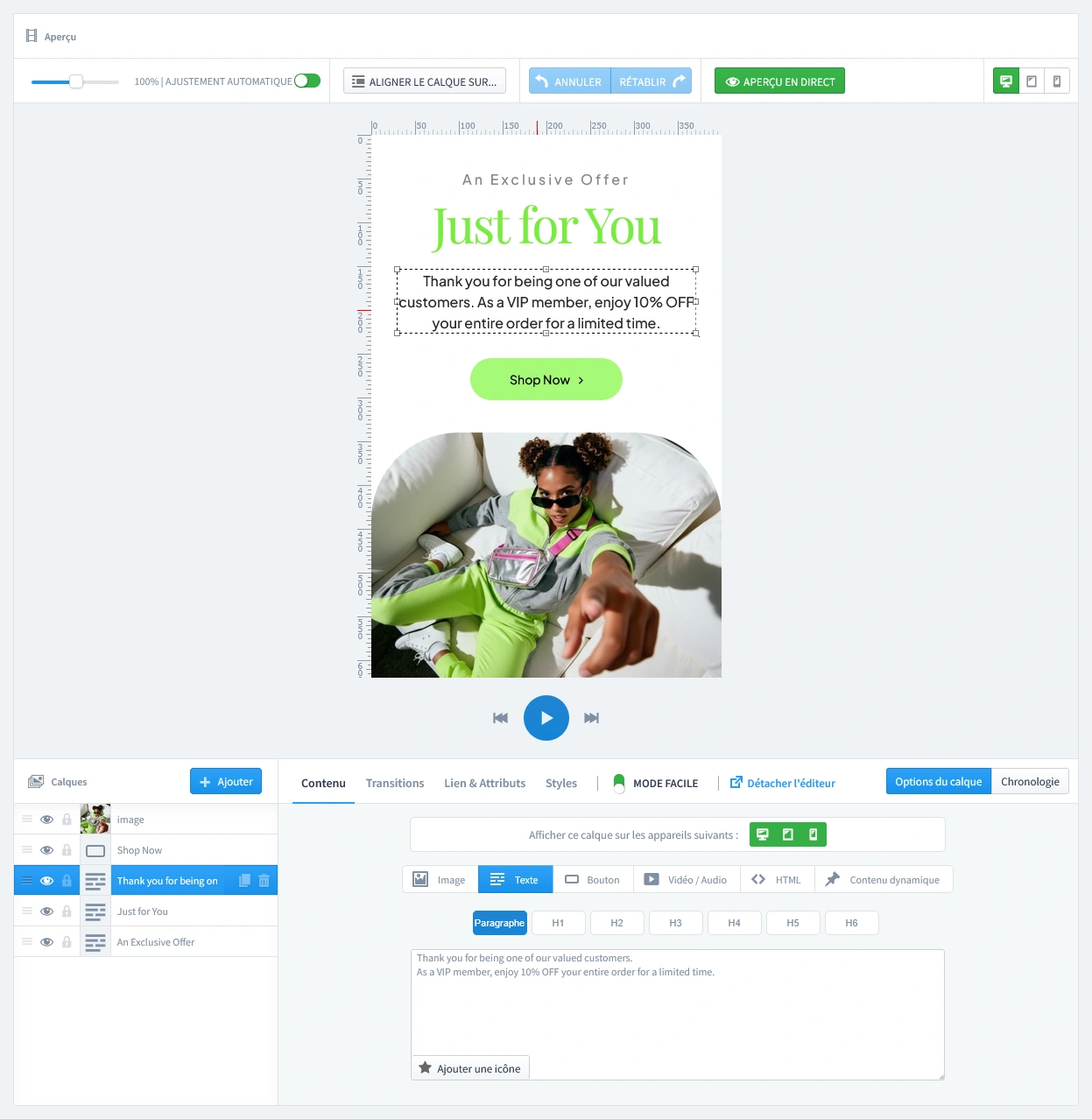 - Promouvoir une vente privée ou un accès anticipé à une nouvelle collection.