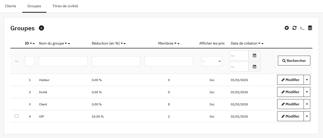 Avant de créer le popup, il nous faut un moyen pour que PrestaShop identifie vos VIP. Cela se fait en créant un nouveau groupe de clients.