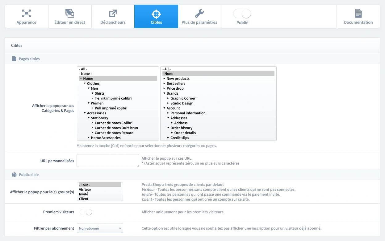 - Audience ciblée : masquez le popup pour les utilisateurs déjà abonnés afin de l'afficher uniquement aux nouveaux visiteurs et non-abonnés.