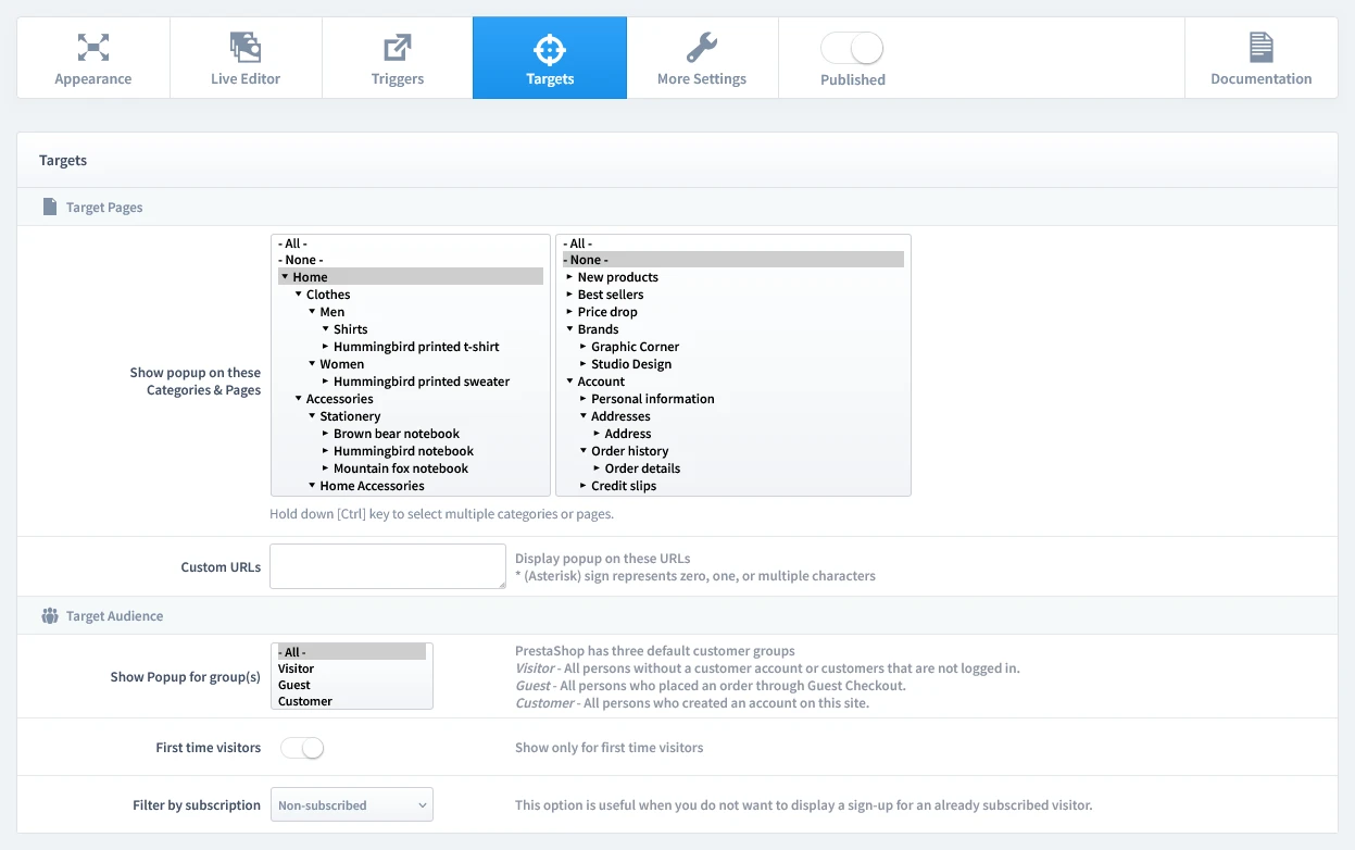 - Target Audience: This is a crucial step; configure it to hide the popup for subscribed users. This ensures you only show the offer to new visitors and non-subscribers.
