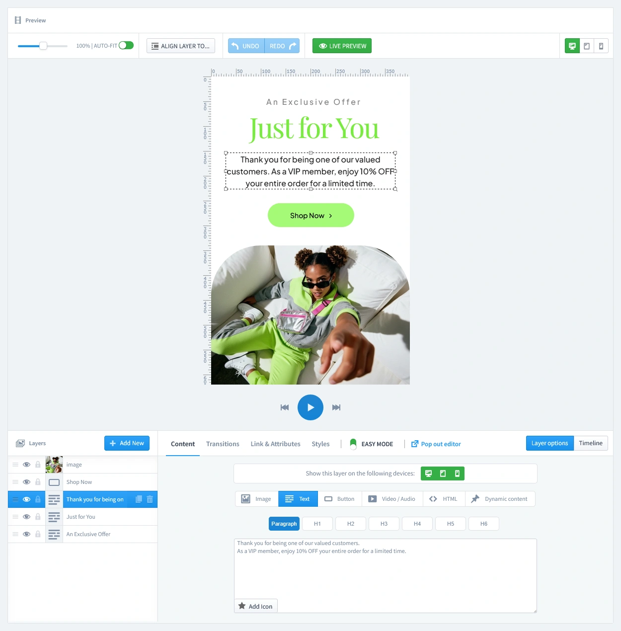 - Promote an exclusive sale or early access to a new collection.